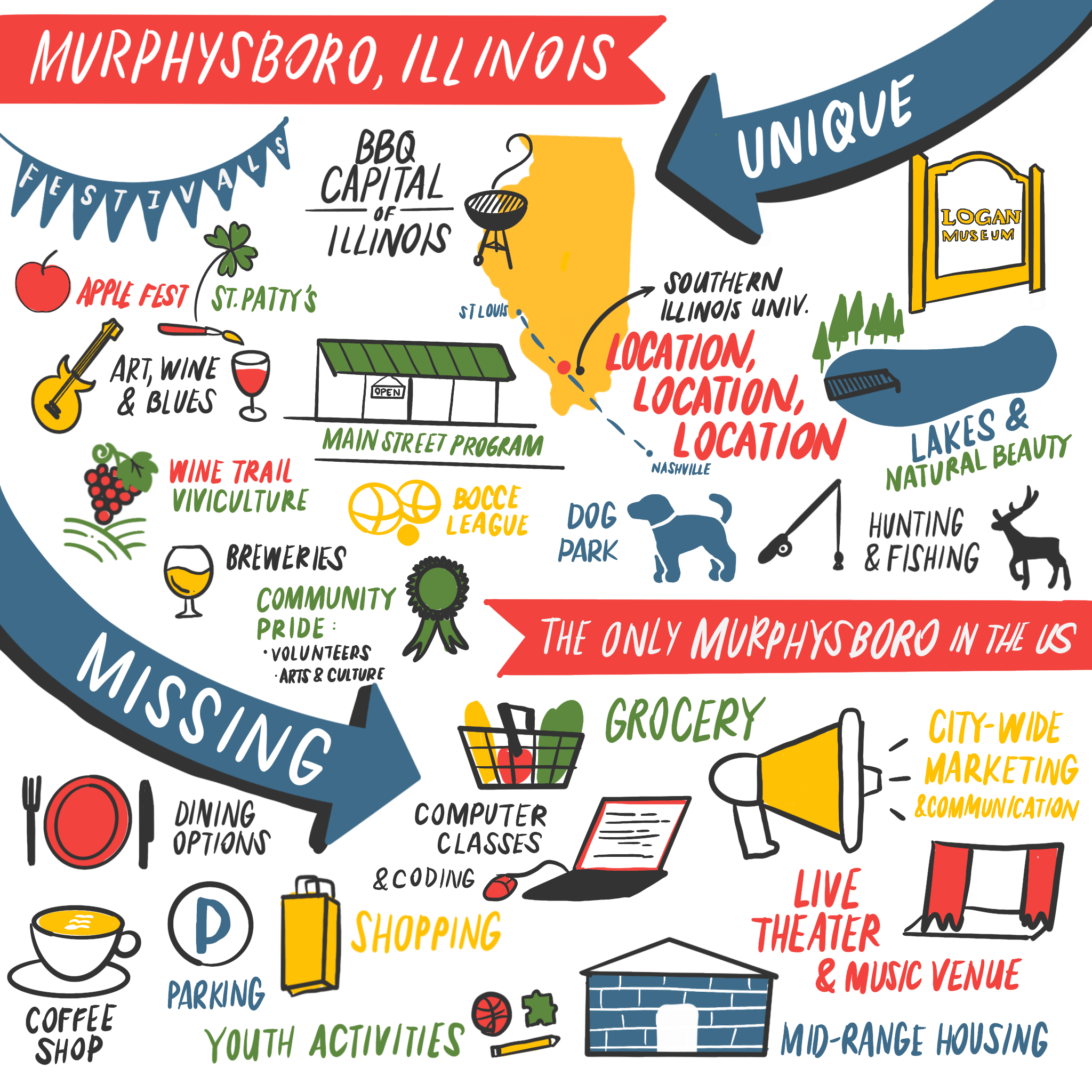 In 2018, we held community input and visioning sessions with a diverse group of residents, providing the foundation for identifying the projects that comprise Revitalize 62966. Conversations focused on identifying current community assets, what we need to attract and retain the next generation, and how we can boost and provide economic development opportunities.